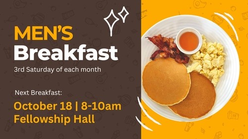 MEN’S BREAKFAST - Saturday, October 18, 8-10am, Fellowship Hall