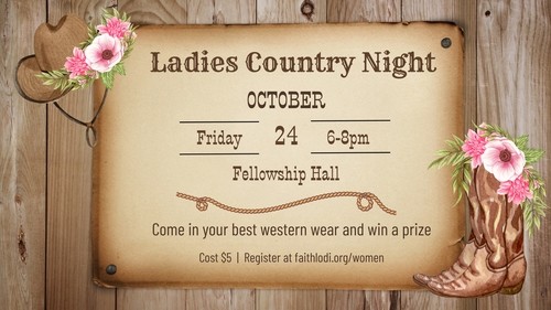 WOMEN’S COUNTRY NIGHT - Friday, October 24, 6-8pm, Fellowship Hall