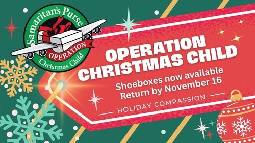 Samaritan’s Purse Operation Christmas Child shoeboxes will be available for you to pick up this Sunday. You’re invited to fill a box or two with toys and fun items, providing boys and girls around the world with what might be their very first gift ever! Each gift-filled shoebox will be delivered, along with the message of the Gospel of Jesus Christ, to a child in need. Join us in spreading Christmas joy to children across the globe this year. Please return filled boxes no later than Sunday, November 16.