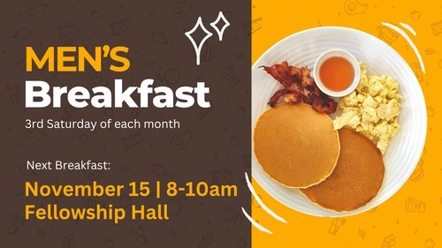 MEN’S MONTHLY BREAKFAST - Saturday, November 15, 8-10am, Fellowship Hall