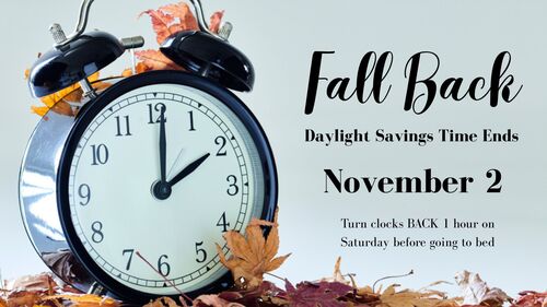 TIME CHANGE FALL BACK - Saturday, November 1, 2am