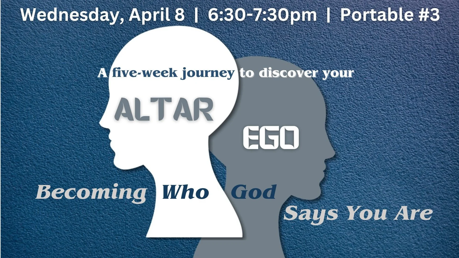 When we place our false labels and self-deception on the altar of God's truth, we discover who we really are as His sons and daughters. Because you are who God says you are. And until you've sacrificed your broken concept of your identity, you won't become who you are meant to be. Instead of an outward-driven, approval-based ego, we learn to live with an "altar" ego, God's vision of who we are becoming. No need to sign up, just show up!